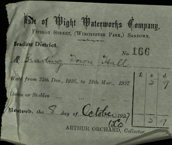 BTT 1169-95-1 BTT 1169-95-1 Receipt from Isle of Wight Waterworks Company for Sept to Dec 1926