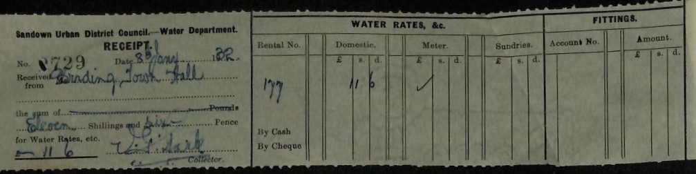 BTT 1169-76-2 Water Rate receipt for Town Hall January 1932, click this link for PDF file > BTT 1169-76-2